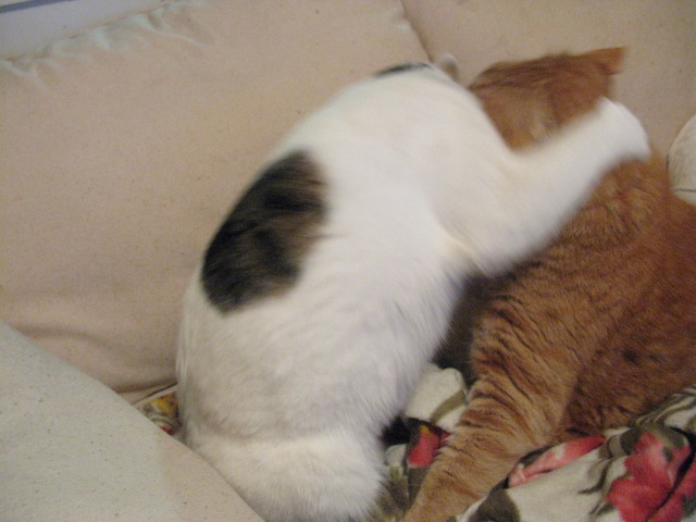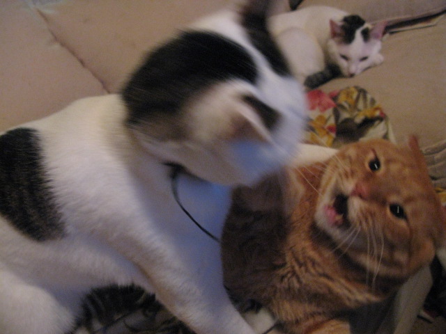 (4匹の中でもおとなしく、未だに自分の尻尾にじゃれる子)